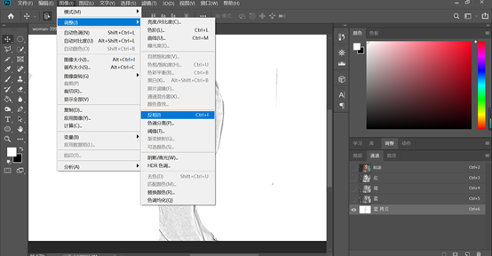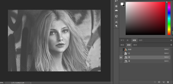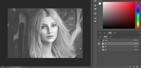 2、点击通道,分别点击红色通道、绿色通道,蓝色通道