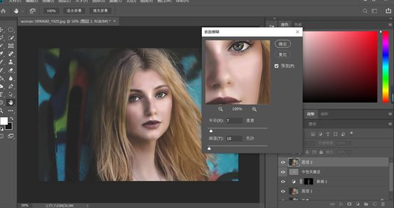 13、执行【滤镜】-【模糊】-【表面模糊】,具体数值如下图