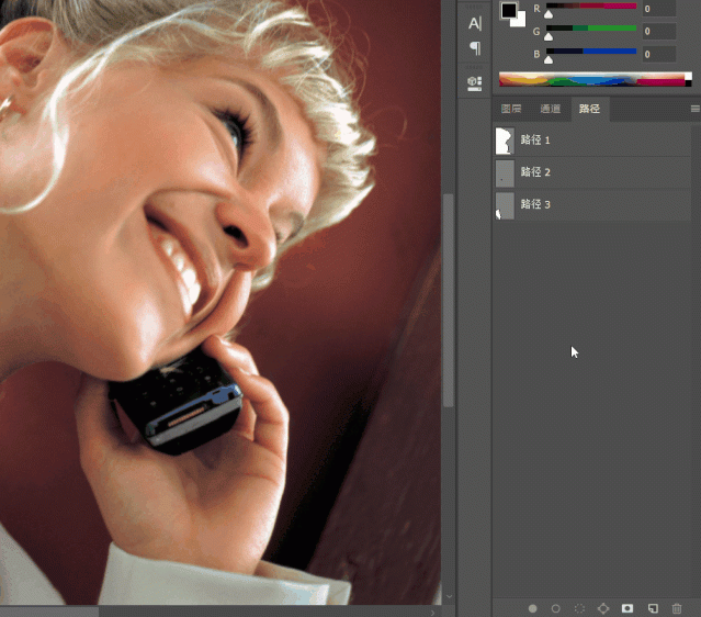 【小技巧】:按住Ctrl键单击路径的缩略图,可载入路径的选区,如果配合Shift键,可实现加选的功能,如果配合Alt键,可实现从选区中减去的功能。