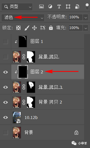 (7)在头发图层上新建一个空白图层,填充黑色,将图层混合模式设置为滤色,创建剪切蒙版;