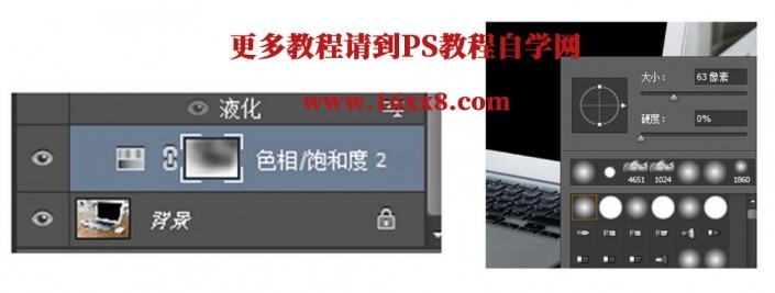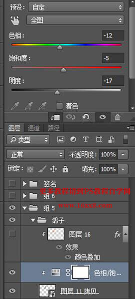 第2步:因为考虑到我想把它做的偏暗色系,所以先调整素材的色相饱和度,整体调暗。在色相饱和度的蒙版http://www.16xx8.com/tags/38847/层用黑色柔角画笔擦除不需要变暗的地方
