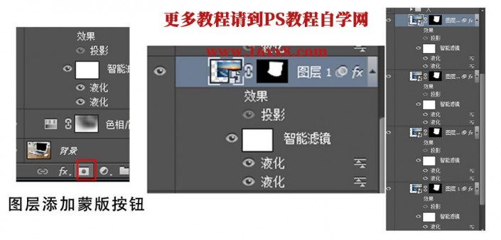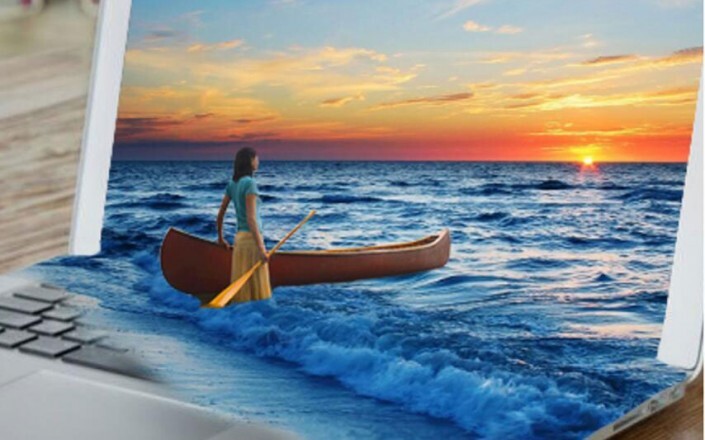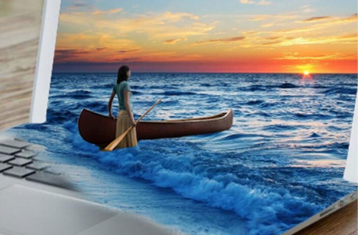 第3步:将夕阳素材图片用蒙版的方式放置在电脑上。用液化是波浪有点窄,在液化里拉宽。觉得页面整体冲击力不够,又将夕阳素材复制了几层。