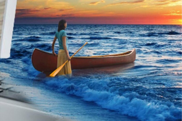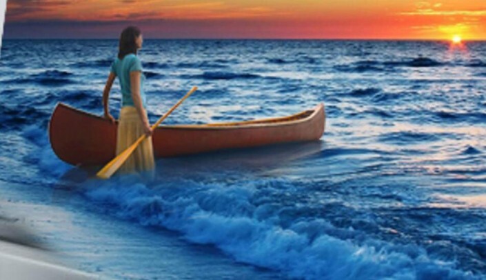 第8步:海水颜色很深,船的倒影不会很清晰。所以,新建图层,用柔角画笔,调出灰蓝色,涂抹船的倒影。并根据效果调整透明度。