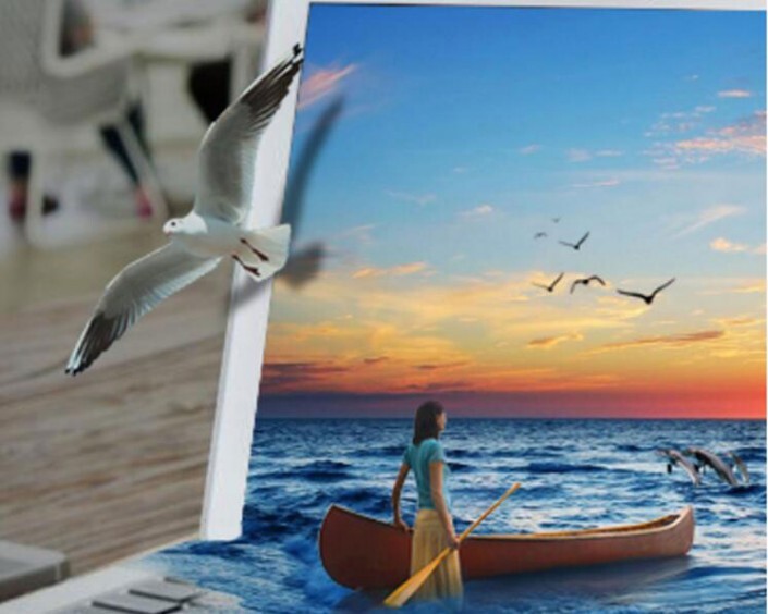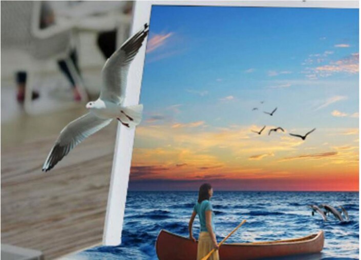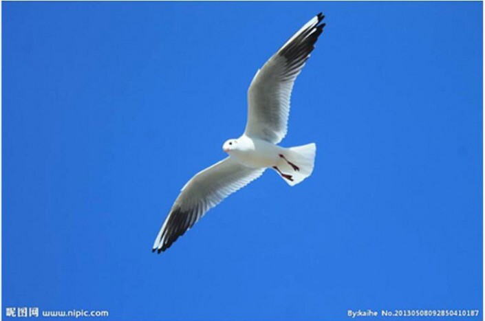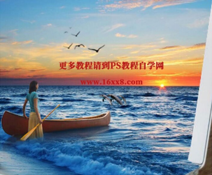 第12步:加上海鸥素材,因为素材就是png,比较省事,直接放上去调整了大小,其实这里还可以在给海鸥向着夕阳的一面打上橙黄色光。懒得没弄,尴尬~~想做的更细的同学可以继续做。