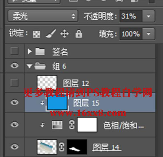 第19步:觉得还是不够蓝。新建图层,填充蓝色,图层混合模式用柔光,不透明度30%,使其颜色更偏向海滩。