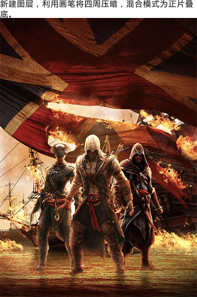 本期图文难点并不多,但是要注意的地方是,在水中的投影需要用水纹的感觉;另外就是火焰的运用,不要调整透明度