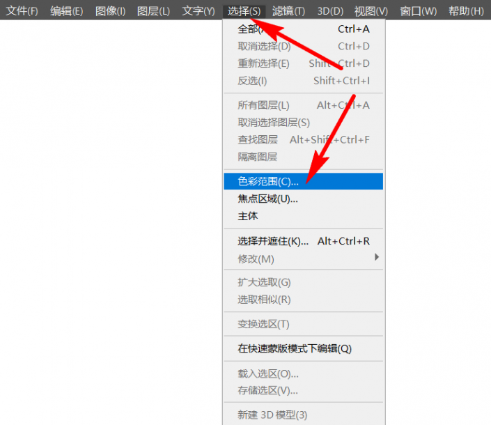 【选择】-【色彩范围】