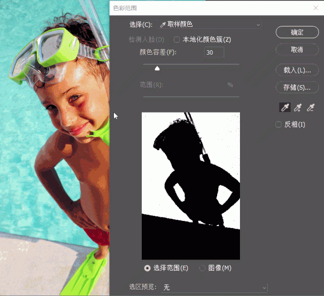 1. “色彩范围”对话框内的预览图