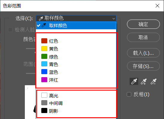 执行“色彩范围”命令后,会弹出如下对话框: