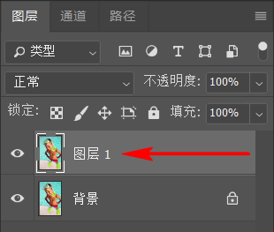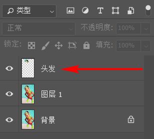 (2)保持选区的状态,选中【图层1】,然后按下:Ctrl+J,将选区内的图像复制到新图层中,我们可以将图层重命名为【头发】;