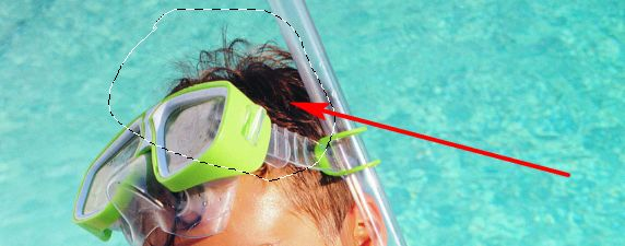 (1)首先使用【套索工具】在小男孩的头发处大致画出选区,这样我们后面的“色彩范围”命令就只作用于这个选区里面了;