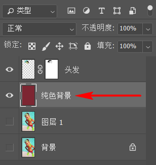 【PS】:为了方便地观察选区的效果,建议在【图层1】的上方新建一个图层,将其填充纯色,作为底色;