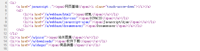 判断是否有子栏目,有就输出javascript:;,没有子栏目就直接输出一级栏目的链接
