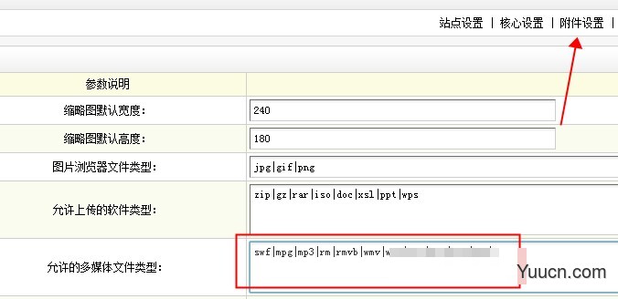 一、后台系统设置 上传附件 添加MP4格式(首先要让后台支持mp4格式文件上传),如图所示