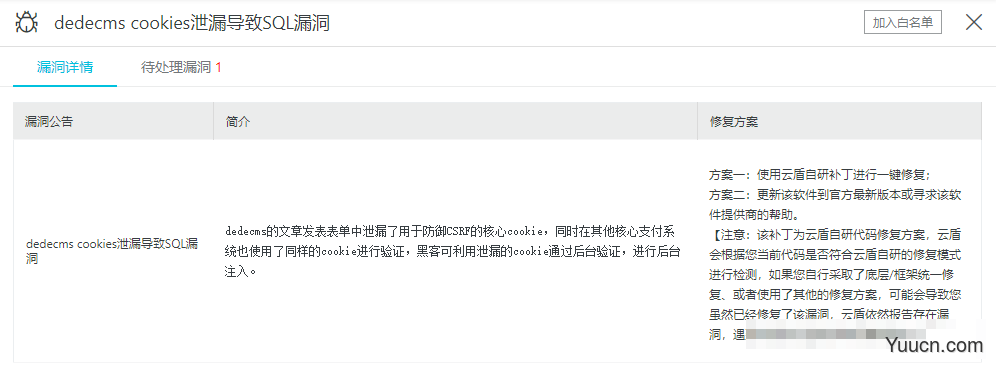 自行采取了底层/框架统一修复、或者使用了其他的修复方案,可能会导致您虽然已经修复了该漏洞,云盾依然报告存在漏洞,遇到该情况可选择忽略该漏洞提示