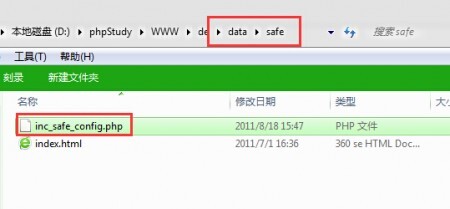 - 登录FTP或者本地织梦测试文件,打开date文件下的safe文件,然后打开inc_safe_config.php文件。