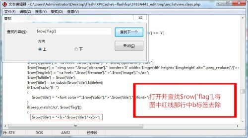 通过FTP工具打开dedecms的include文件夹,找到arc.listview.class.php文件,打开并查找$row['flag'],将图中红线那行中b标签去除,保留图中的php语句即可,建议去除前先备份下。