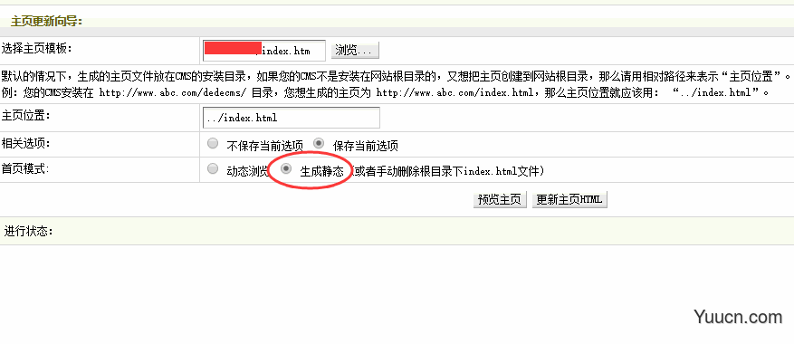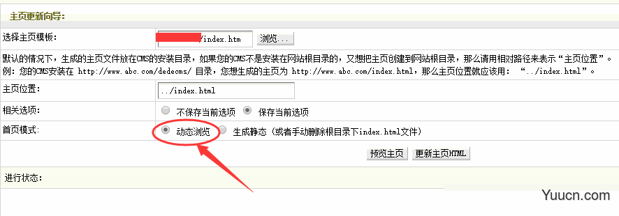2、另外一种方法就是将首页生成方式改为动态浏览,那么手机站就也会以动态方式实时显示,也就不用每次去删除文件了。设置方法如下图: