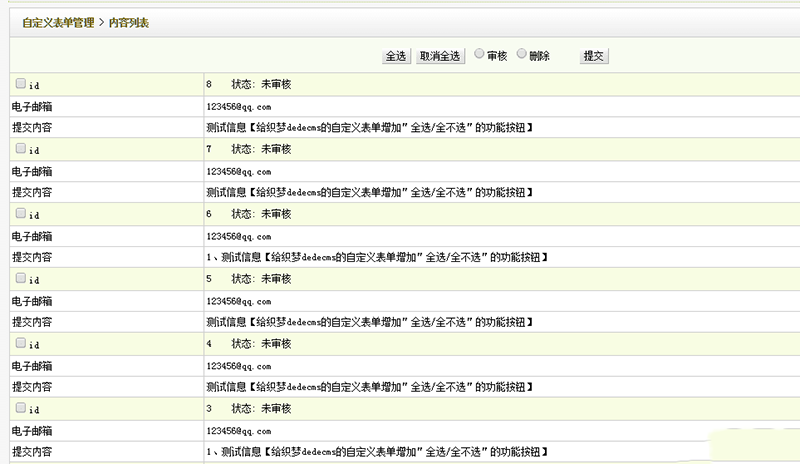 织梦自定义表单没有批量选择的功能,给我们管理带来很大不便,如果需要加上“全选/全不选”的功能,步骤如下:
