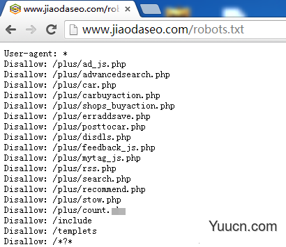 7,robots掉带?的网址。曾经的一度,很多人利用带?的网址来做虚拟网址,引起整个seo行业的惊动,而其中的技术原理就是百度收录了大量大站的带?网址,如果我们禁止掉带?网址的话,这类的行为就无法进行。同时,也会由于其他的方面导致带?网址的收录,会对seo不友好的,因此我们建议都robots掉。比如我们焦大seo服务联盟就屏蔽掉了这类网址的收入,举例如下:
