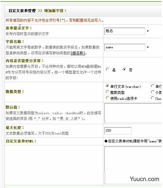 第五步:进入“添加新字段”界面后,根据您自己的需求添加好您的字段信息,如图六: