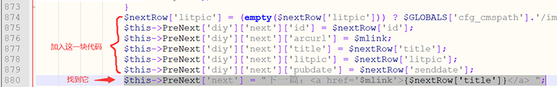 $this->PreNext['next'] = "下一篇:<a href='$mlink'>{$nextRow['title']}</a> ";