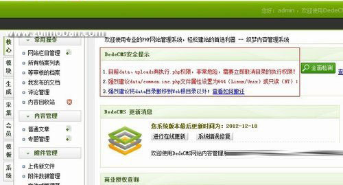 现在给大家分享一下如何解决dede织梦系统后台"dedecms安全提示"的方法: