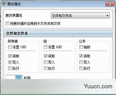 强烈建议data/common.inc.php文件属性设置为644(Linux/Unix)或只读(NT)。我们进入data文件夹找到common.inc.php,这个文件是网站数据库配置文件,非常重要。我们同样点右键选择“属性”,弹出对话框,去掉“组”和“公共”的“写入”权限前面的钩钩,再把三个属性里面的“执行”权限前面的钩钩去掉,就可以获得“644权限”(如图3),完毕。
