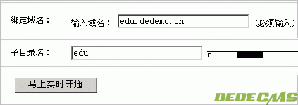我们需要将这个二级域名绑定到栏目目录中去,因为我们需要绑定的栏目在根目录的edu文件夹下面,我们可以通过http://www.dedemo.cn/edu/index.html来进行访问,所以我们将edu这个二级域名绑定到这个目录中去,如果是虚拟主机需要有绑定二级域名到栏目的功能,这里我就举例说明:
