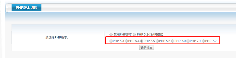 选择需要切换的PHP版本,然后点击“确定提交”即可!