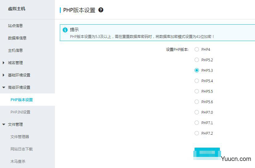 主机控制面板--高级环境设置--PHP版本设置