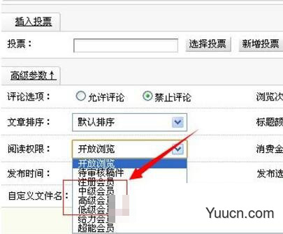 Dedecms发布文章设置会员查看级别教程