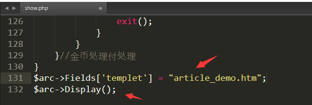 $arc->Fields['templet'] = "article_demo.htm";