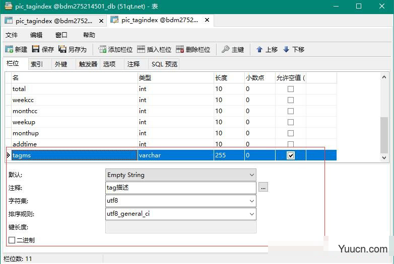 新建tagms字段,类型varchar,长度255,允许空值。