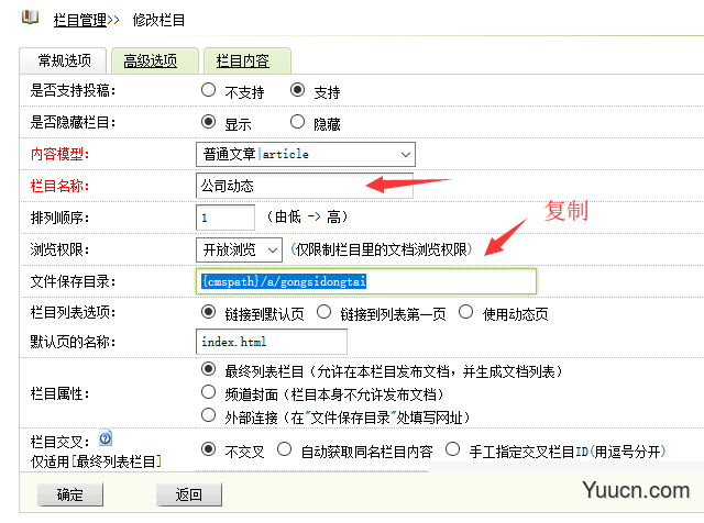 复制子栏目的文件保存目录,替换到顶级栏目的文件保存目录里