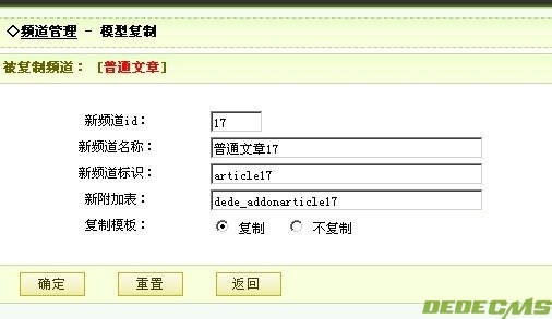 以文章系统来说,如果我们要建立多个文章栏目,希望每个栏目都有单独的数据表,而不希望等栏目数据多了以后再来后悔当初没有进行分表,所以我们在开始建立栏目之前,要进行进对 频道模型里,普通文章 这个模型进行 复制 的操作,这一步就是大家所谓的分表。