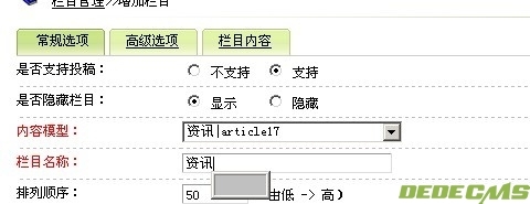 在这里可以个修改成你即将要建设的新栏目的名称,比如你想建一个新栏目叫做资讯,那么这里同样可以起名叫资讯,以便你在建立栏目时选择数据表,也就是不同模型时用于区分,如下图: